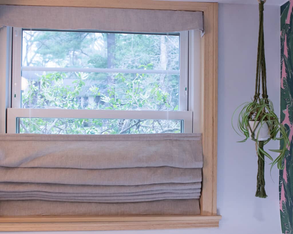 Many of my other home décor projects up to this point have centered on my powder room renovation, leaving just one daunting project to complete the room: a top-down bottom-up roman shade. I wanted to continue the hobbled roman shade look from my studio into the attached bathroom because they add a lot of texture and warmth to a space that otherwise could be very cold feeling.