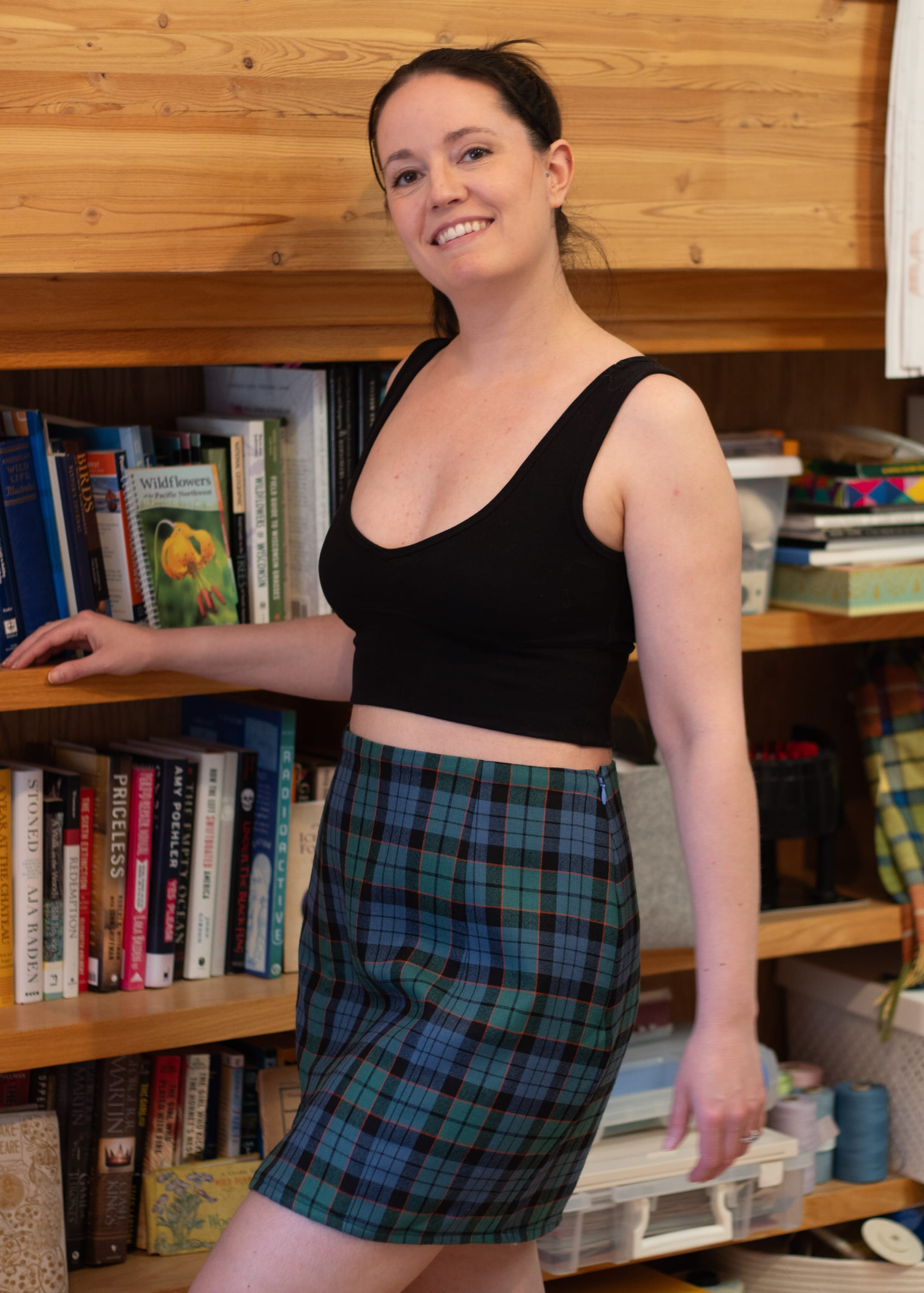 I’ve been steadily working on my embroidery for my test bra, but took a break over the 4th of July holiday weekend to sew a skirt for summer. I'm slowly on a mission to sew my entire wardrobe for a few reasons, fit and fabric selection being the two most important. I chose a wool tartan from my stash for this project, because yes, wool can be a summer fabric. This one is particularly lightweight and I've not had any issues wearing it in the heat of summer.