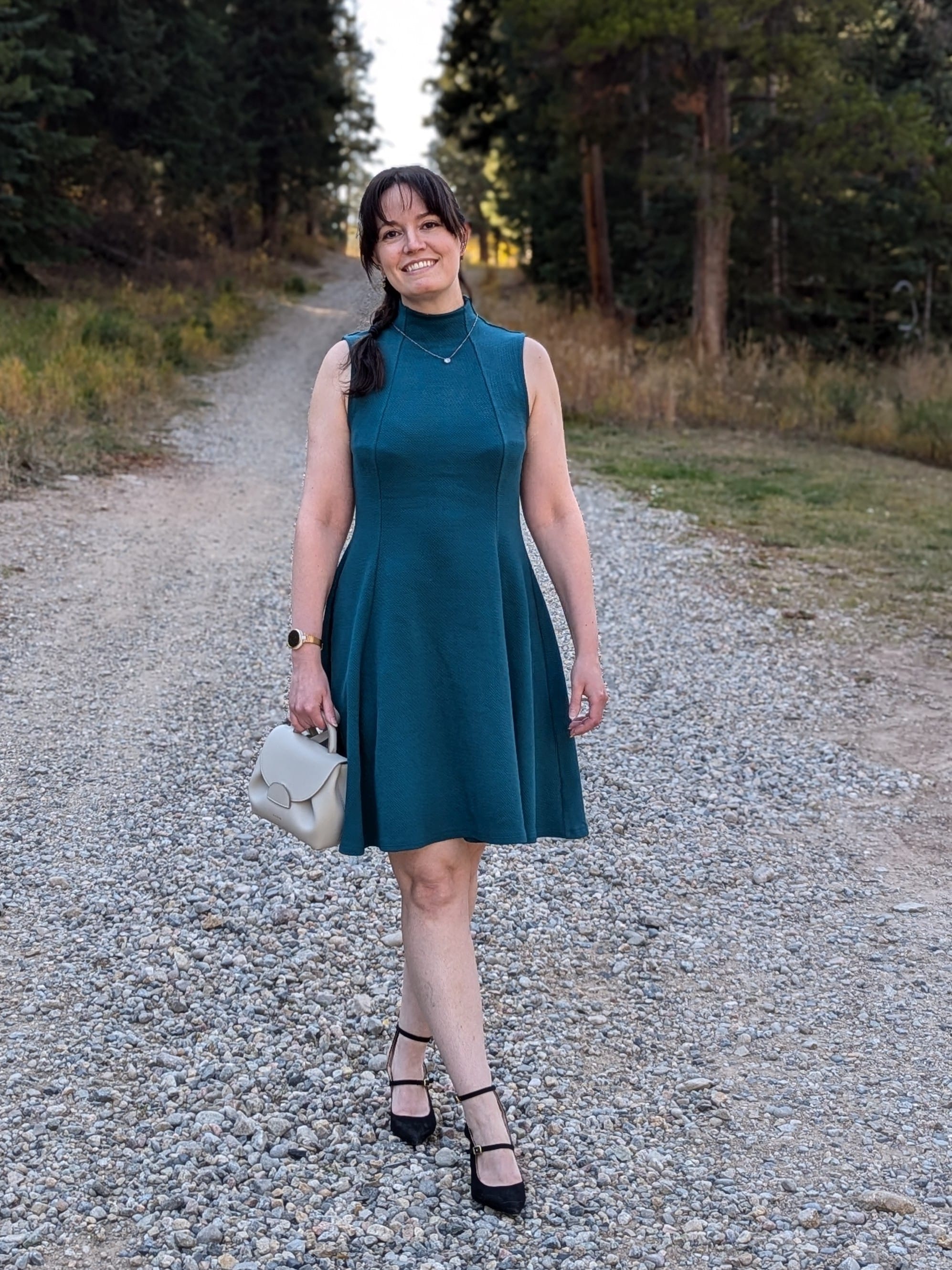 I am in love with both the fit and color of the dress and am so happy with how it turned out. I would recommend this pattern if you’re an adventurous beginner or intermediate sewist. The pattern itself was well drafted and I didn’t find any flaws in how the pieces lined up, which is a big pet peeve of mine. I also thought the directions were very thorough and there were plenty of resources if you need to look something up. The only sewing direction changes I would make would be to sew the side seams before attaching the armscye stabilizer (for the sleeveless version).